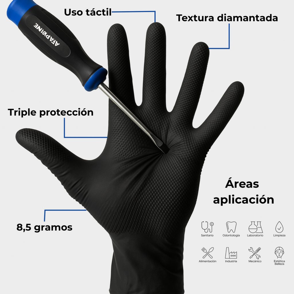 Guantes de nitrilo profesional con agarre diamantado protección para talleres, industria, limpieza y uso profesional.